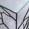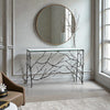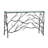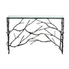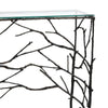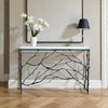 自然の枝を思わせる繊細なアイアンフレームと、すっきりとしたガラス天板のコントラストが美しいコンソールテーブル。