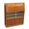 • 上段(デスク): 鍵付きのフラップ扉を手前に開くと、たちまちパーソナルデスクに早変わり。内部には細かな書類を整理できる仕切りがあり、ノートパソコンでの作業や書きものに最適です。